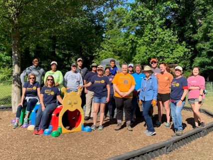 James City County Satellite Club received a thank you for helping to celebrate the school’s fabulous teachers during Teacher Appreciation Week by baking and boxing delicious cookies for the James River Elementary teachers and staff to enjoy. AND… submitted by Neva Lynde The Rotary Satellite Club of James City County continues its service at the Williamsburg Salvation Army Mobile Food Pantry. Joining with volunteers from the RC of The Historic Triangle and other organizations, the Satellite registers clients for the food pantry to meet the continuing need for food support throughout the community. Warwick at City Center Club:Submitted by Jennifer Daknis Warwick at City Center Rotarians recently participated in a service project with SMART Beginnings of the Virginia Peninsula by spreading mulch, planting flowers and laying gravel for the new outdoor learning environment at Resurrection Lutheran Church. Bon Air Club: Petersburg Lunch and Petersburg Breakfast Club will be holding their 14th Annual Golf Tournament on September 10, at Dogwood Trace Golf Course, Petersburg. For details go HERE.